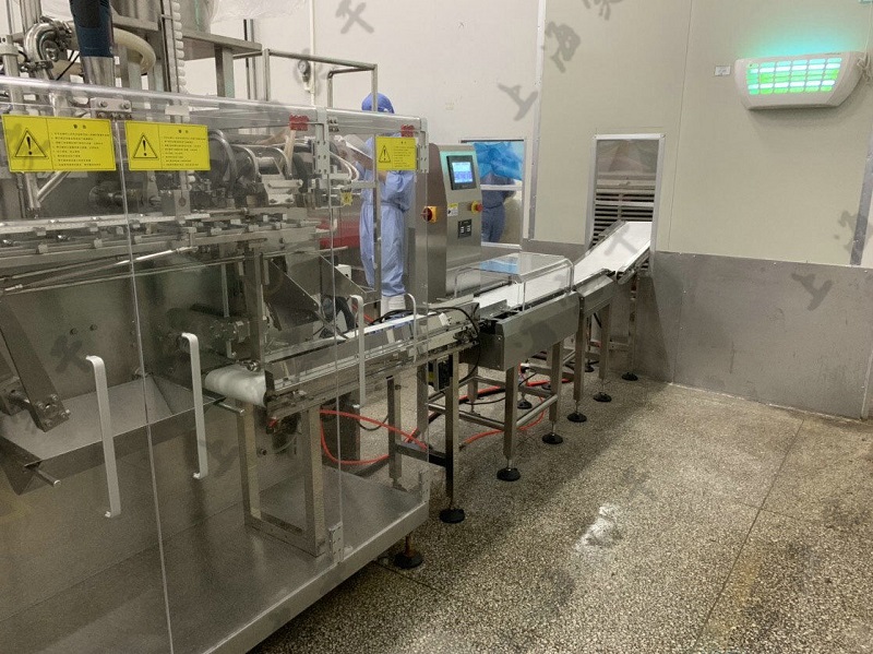 The Stand-up Pouch Fruit and Vegetable Puree Checkweigher is an online automatic weight detection device specifically designed for vertically packaged fruit and vegetable puree products. It is typically installed at the end of the packaging production line to accurately measure the weight of each bag of puree in real time, ensuring the product meets the set acceptable weight range.